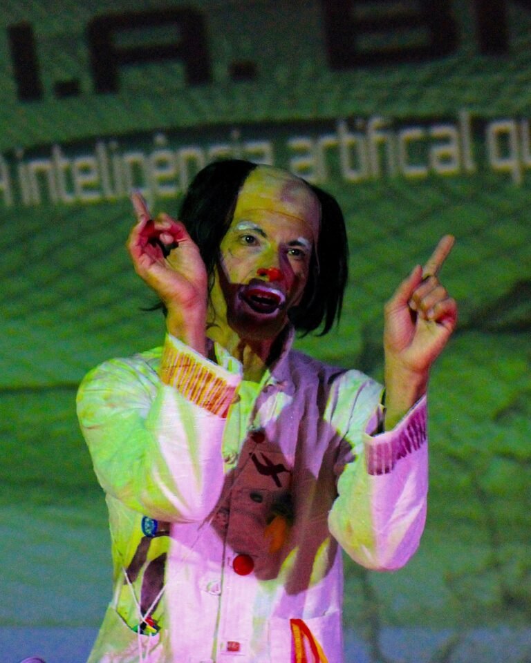 Sobre a peça “Inteligência Artificial, Burrice Natural… cada coisa pelo seu nome!”? Ah! Curti demais! Bem interessante. Muitas camadas bem amarradas… a aula de ética bem aproveitada (meio que parece q o personagem encontra uma brecha no sistema pra fazer refletir e divulgar uma causa que acredita…), a luta de classes (a IA usada pra exacerbar ainda mais a desigualdade), os jogos (a alienação DE nós mesmos), a ideia de “perfeição” padronizada como recurso de exploração (a alienação EM nós mesmos que somos provocados a sempre ser ‘perfeitos’ – pra quem (?) pra o q (?)…)… a interação com o público que faz muito sentido depois com a exposição dos dados da pesquisa (faz refletir sobre propriedade de informação, público X privado).